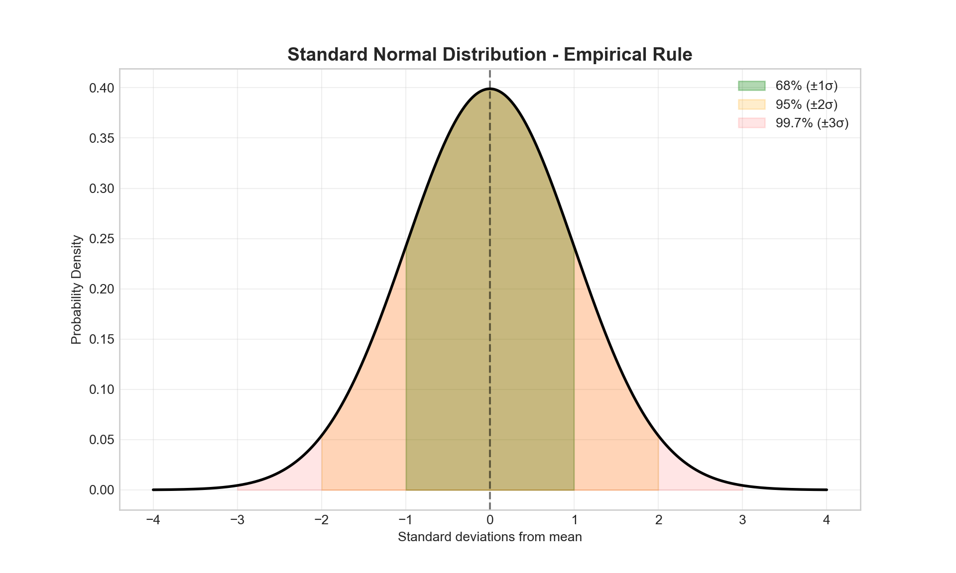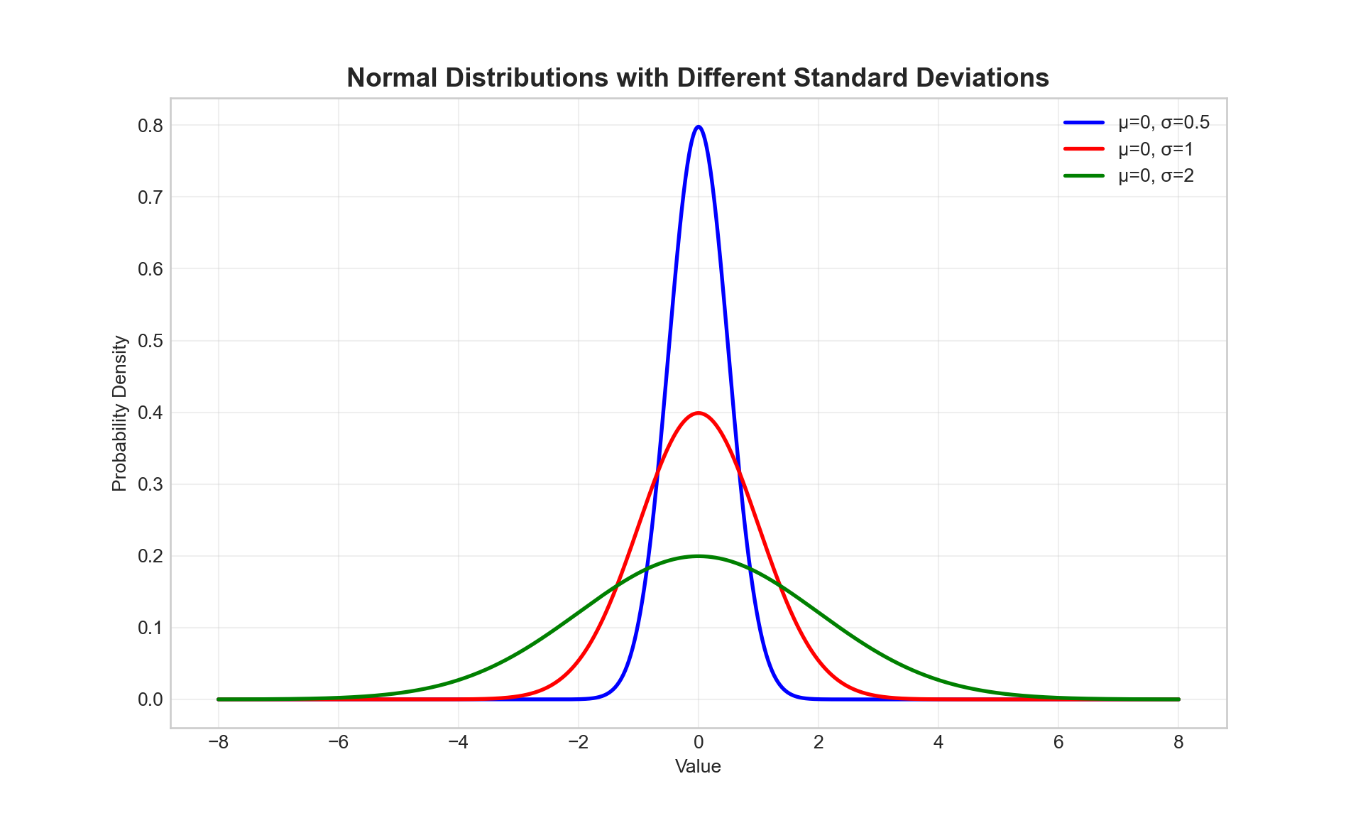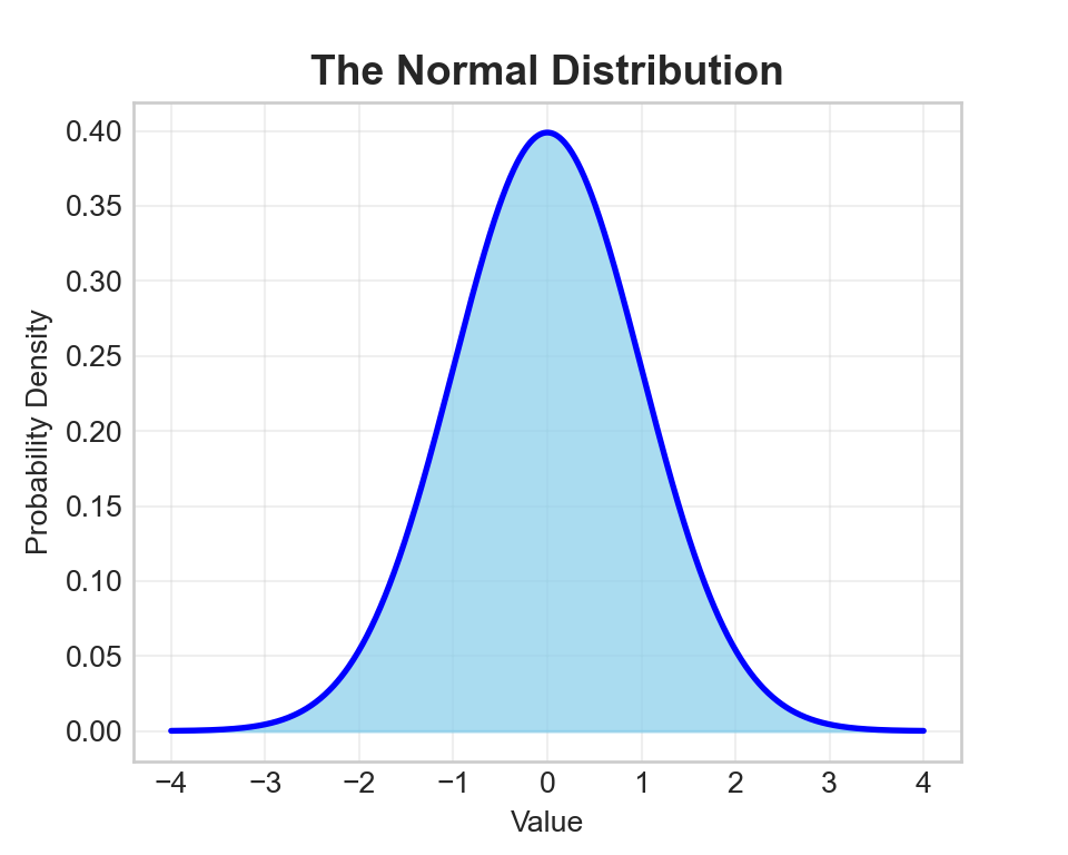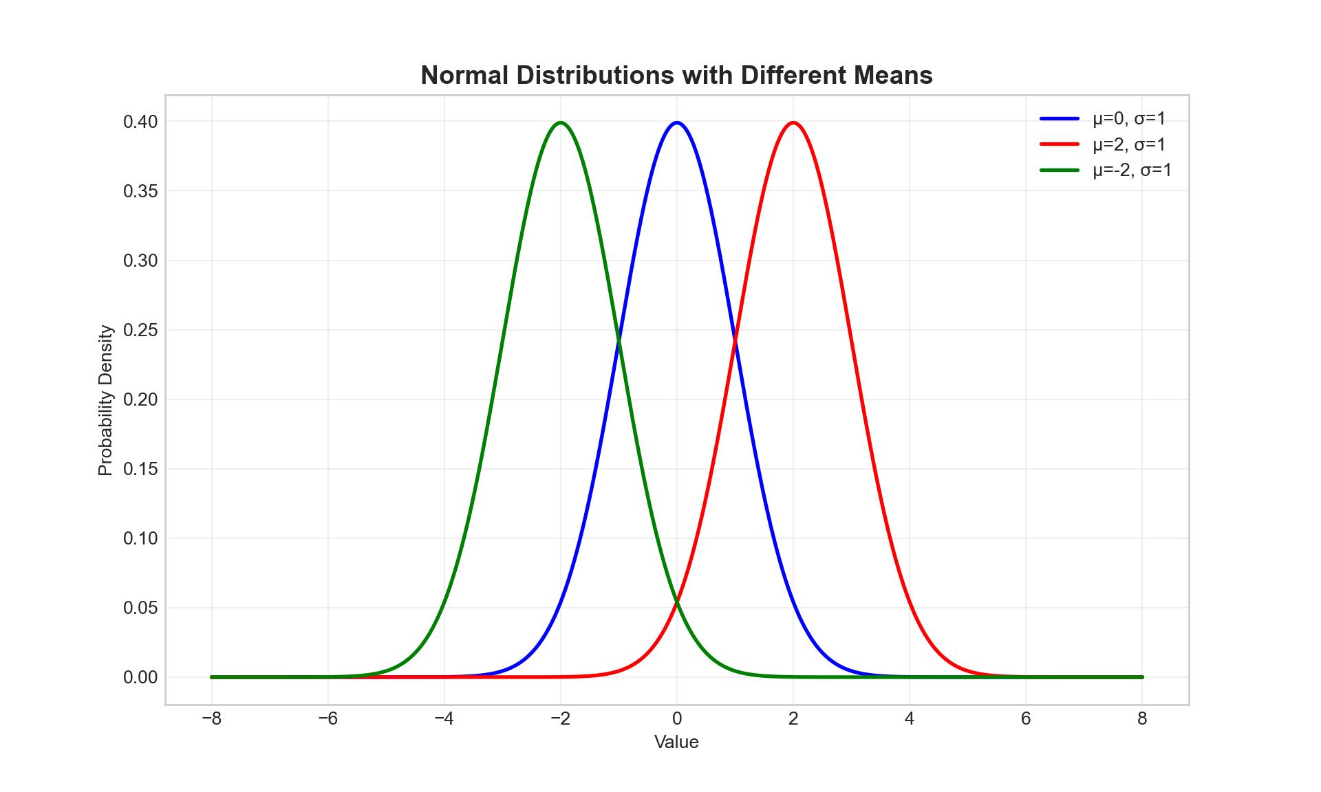 plt.show()The standard normal distribution is a special case where μ = 0 and σ = 1.
